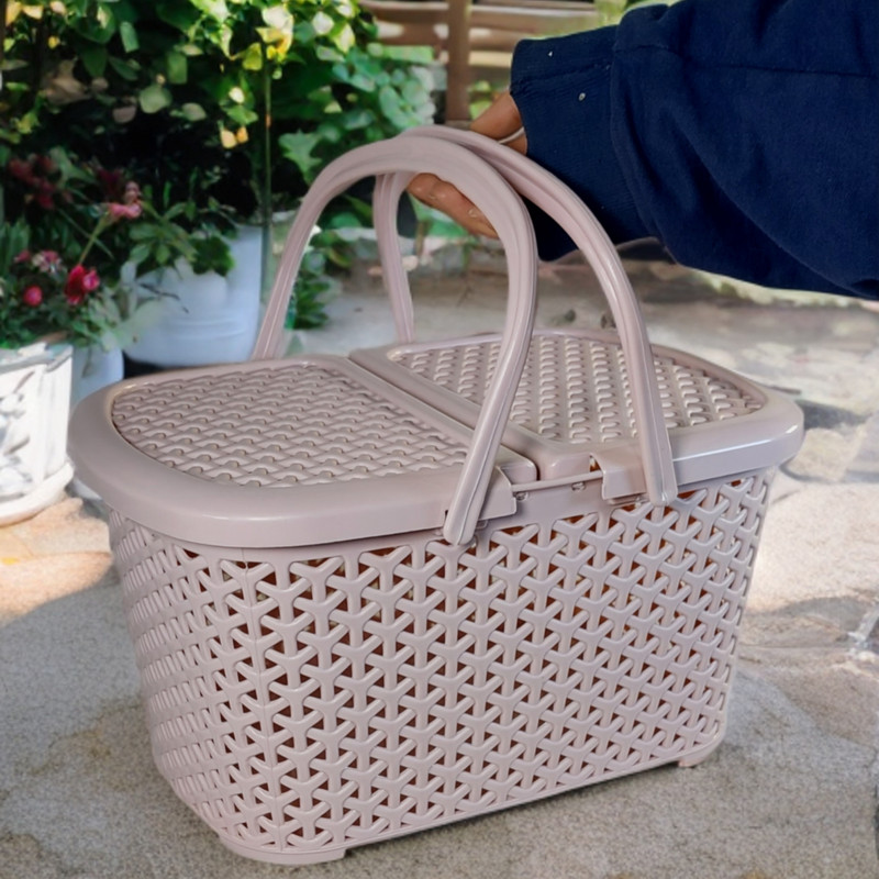 سبد پیک نیک چنار تهیه شده از مواد پلاستیک نو و درجه یک، دارای دو دسته و دو درب برای مسافرت و پیک نیک و خرید میباشد طراحیه زیبا و چشم نواز به همراه رنگ بندی و دو دسته جهت حمل و نقل ایمن و ساده همه ی نیاز شما را برآورده می کند