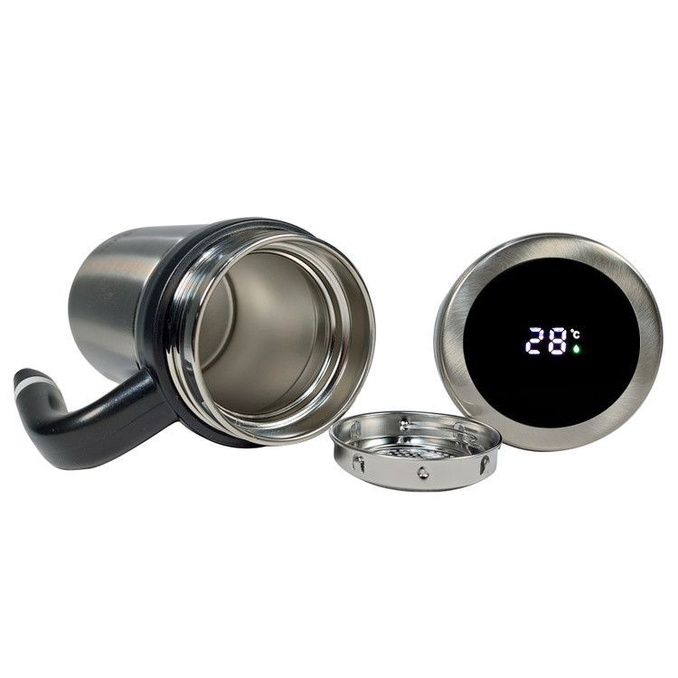 تراول ماگ دسته دار حرارتی یونیک دارای صفحه نمایشگر دما میباشد و عایق استیل 304 ضد زنگ دارد که توانایی حفظ دما (سرد و گرم) را دارد و همچنین دارای صافی استیل جهت دم کردن دمنوش و سرو آن نیز میباشد بدنه ی بیرونیه محصول تماما استیل و دسته ی آن از جنس پلاستیک درجه یک و مات میباشد با قیمتی ارزات، محصولی گران و اصل بخرید
