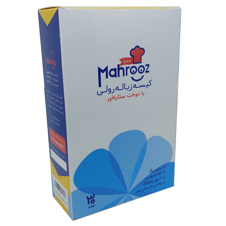 اغلب شما در خانوادههای کم جمعیت زندگی میکنید. ممکن است در طول روز مقدار خیلی کمی زباله تولید کنید که نیاز به کیسههای با سایز کوچک دارید. از طرفی اگر از کیسههای بزرگتر استفاده کنید، مجبور هستید که برای پر شدن آن صبر کنید. این امر از لحاظ بهداشتی خیلی قابل قبول نیست زیرا نگهداری زباله در خانه برای بیشتر از یک روز برای سلامت خانواده مضر است. کیسه زباله رولی خانگی «مهروز» در بستههای 3 عددی و دارای ابعاد 80× 65 سانتیمتر است. این بسته دارای 3 رول 30 عددی است که برای مدت طولانی پاسخگوی نیاز خانواده است. وجود دوختهای ستارهای باعث مقاومت بالای این کیسهها شده تمام کیسهها به هم متصل هستند. این کیسهها پرفراژ دار بوده و به راحتی از هم جدا میشوند. وجود بخشهای جداکننده پرفراژ باعث میشود که به راحتی هر تعداد کیسه که نیاز داشتید را جدا کرده و مورد استفاده قرار دهید. این محصول در یک پاکت کاغذی بستهبندی شده و به راحتی قابل استفاده است.