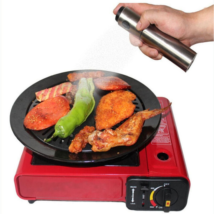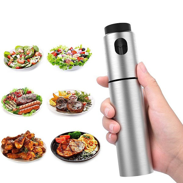 ظرف اسپری روغن و آبلیمو وسیله ای مناسب برای اسپری سرکه، روغن و آبلیمو روی مواد غذایی میباشد. حجم این ظرف 100 میلی لیتر میباشد و بدنه آن از استیل ضد زنگ و جنس داخل آن شیشه است و نسبت به مدل های مشابه که جنس داخلی پلاستیک است بسیار با کیفیت تر و دوستدار سلامتی است.