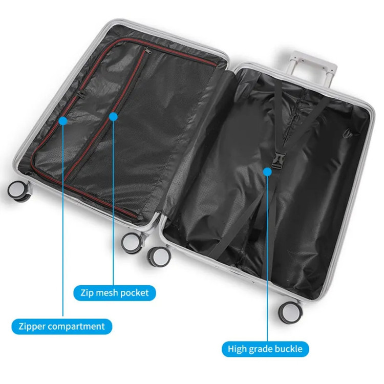 محفظه اصلی یک محفظه ی زیپ دار داخل چمدان یک محفظه کشی جانبی بیرون چمدان