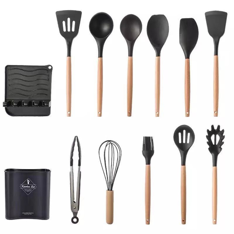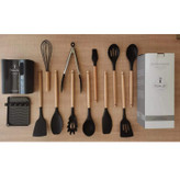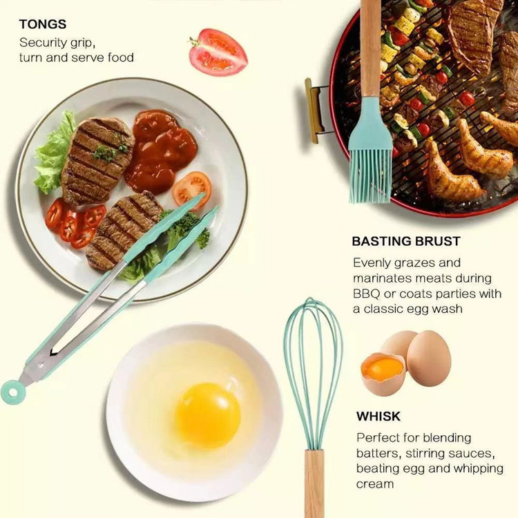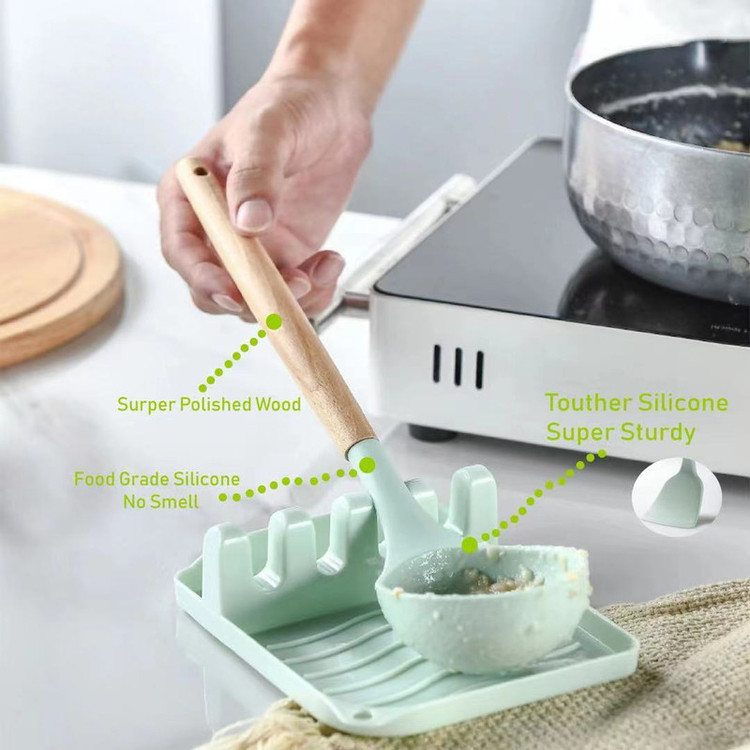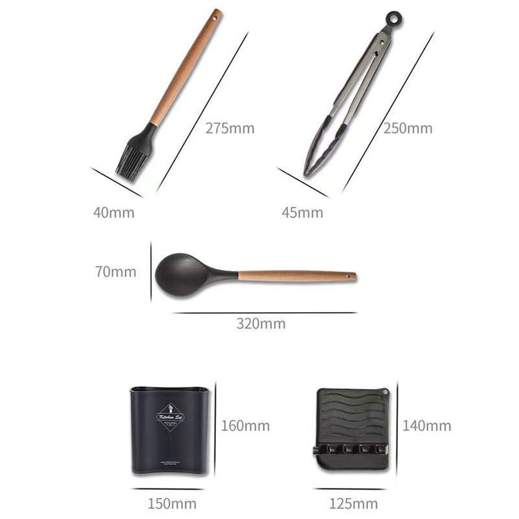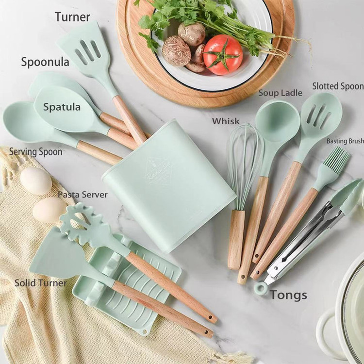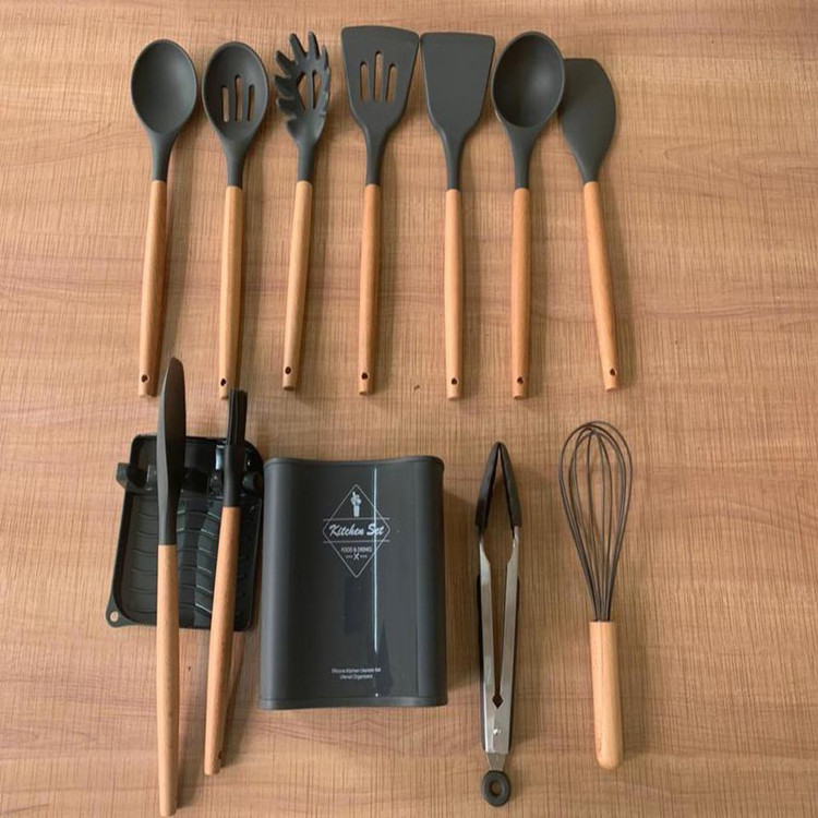 سرویس کفگیر Kitchen Set ساخته شده از با کیفیت ترین مواد سیلیکون با استاندارد FDA و بدون BPM ، دسته های چوبی از جنس بامبو و یک ظرف نگهدارنده از جنس پلاستیک میباشد. این سرویس از وزن متعادل و دیزاین منحصر بفردی برخوردار است که باعث میشود در دست گرفتن آن آسان و پخت و پز را راحت می کند. سیلیکون به کار رفته در این محصول ساخته شده از مواد غیر سمی ، بی بو و سازگار با محیط زیست است. این مجموعه وسایل آشپز خانه در برابر درجه حرارت سرما تا 30- و گرما 230+ درجه سانتی گراد مقاومت دارد. انعطاف پذیری ، رویه های نرم از خراشیدن و آسیب رساندن به ظروف شما جلوگیری میکند و همچنین باعث کاهش سر و صدا هنگام آشپزی می شود. این مجموعه متشکل از 11 عدد کفگیر ملاقه و یک عدد استند قاشق و درب قابلمه و یک عدد ظرف نگهداره می باشد.