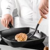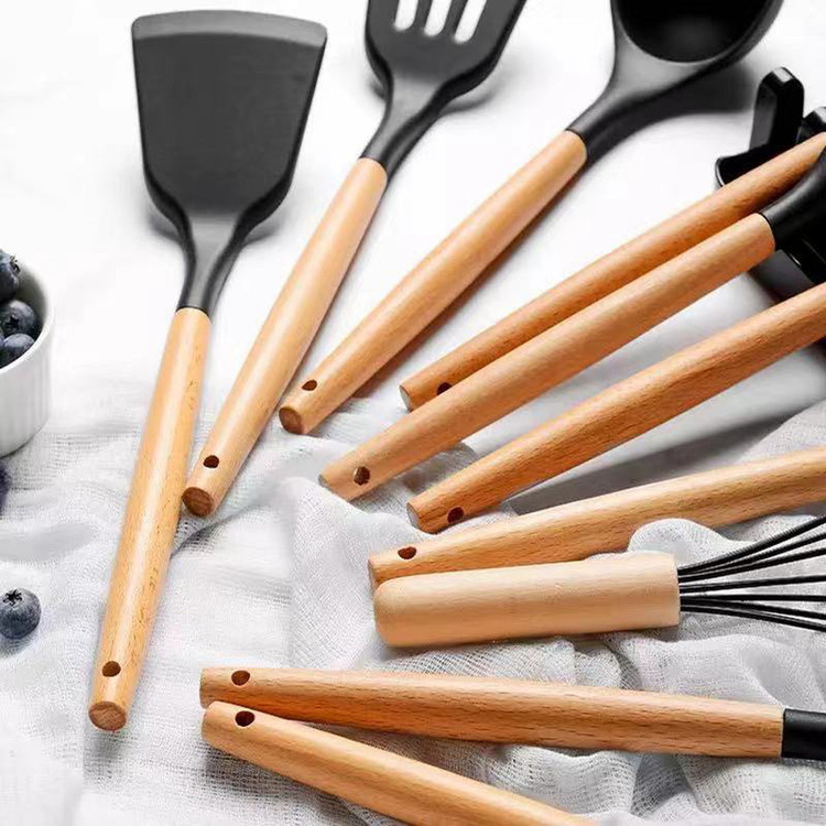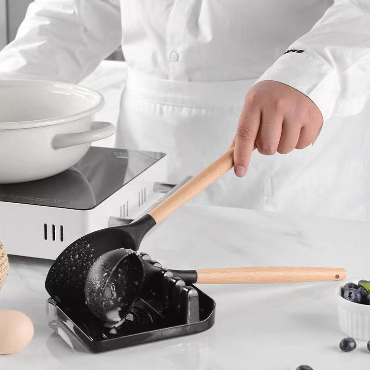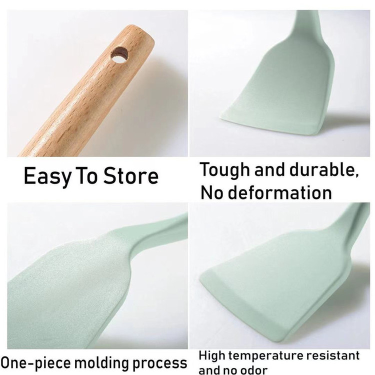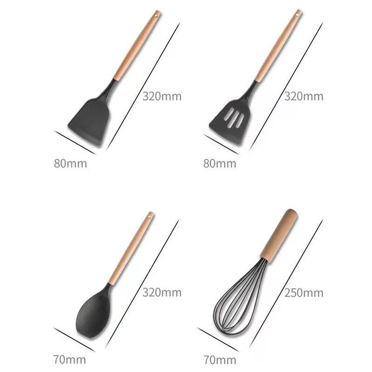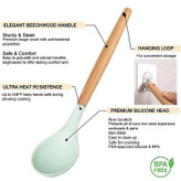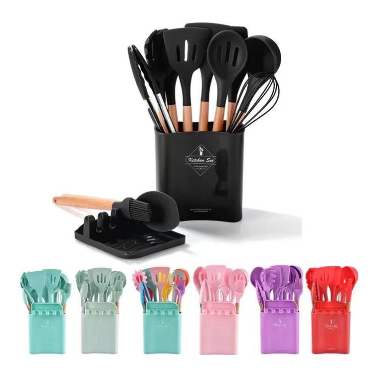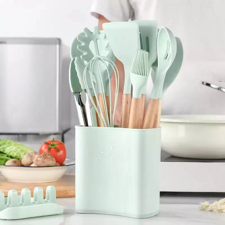 سرویس کفگیر Kitchen Set ساخته شده از با کیفیت ترین مواد سیلیکون با استاندارد FDA و بدون BPM ، دسته های چوبی از جنس بامبو و یک ظرف نگهدارنده از جنس پلاستیک میباشد. این سرویس از وزن متعادل و دیزاین منحصر بفردی برخوردار است که باعث میشود در دست گرفتن آن آسان و پخت و پز را راحت می کند. سیلیکون به کار رفته در این محصول ساخته شده از مواد غیر سمی ، بی بو و سازگار با محیط زیست است. این مجموعه وسایل آشپز خانه در برابر درجه حرارت سرما تا 30- و گرما 230+ درجه سانتی گراد مقاومت دارد. انعطاف پذیری ، رویه های نرم از خراشیدن و آسیب رساندن به ظروف شما جلوگیری میکند و همچنین باعث کاهش سر و صدا هنگام آشپزی می شود. این مجموعه متشکل از 11 عدد کفگیر ملاقه و یک عدد استند قاشق و درب قابلمه و یک عدد ظرف نگهداره می باشد.