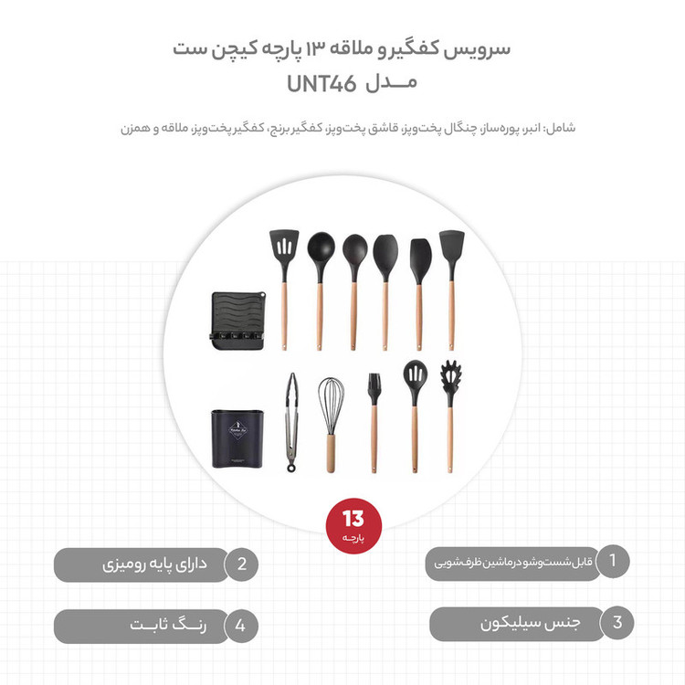سرویس کفگیر و ملاقه 13 پارچه کیچن ست مدل UNT46