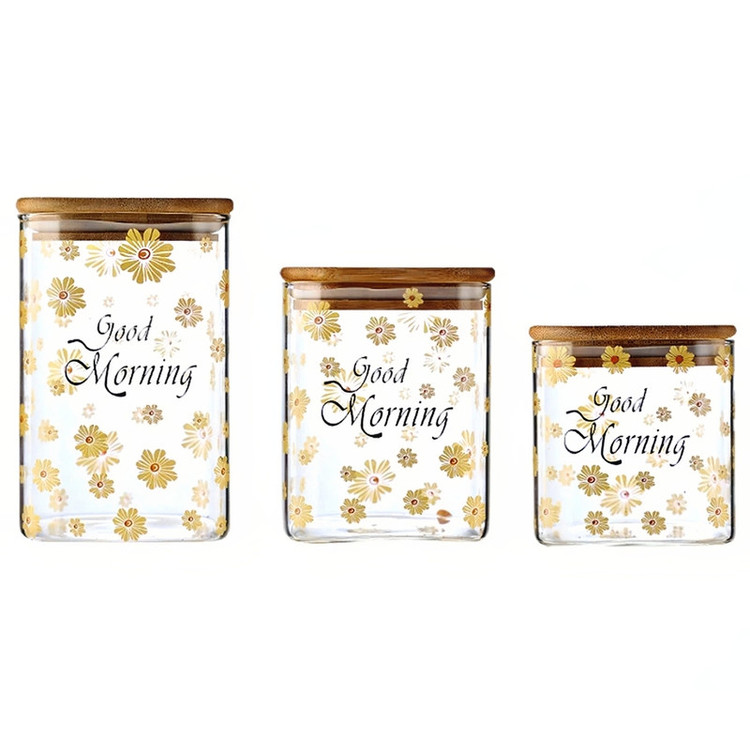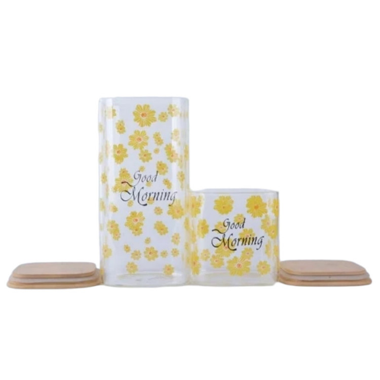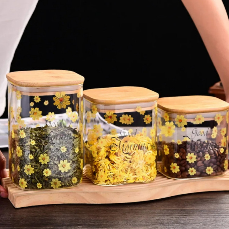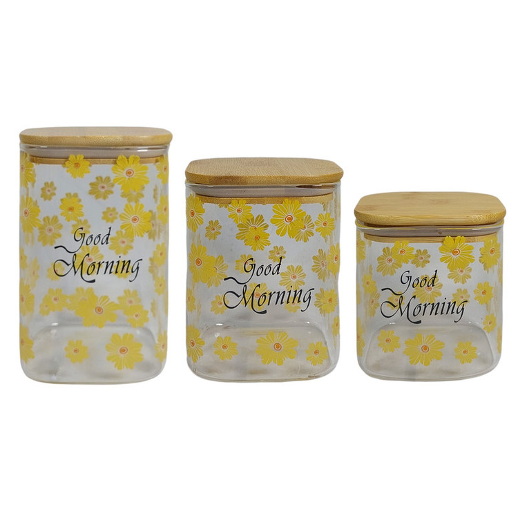 جنس بدنه پیرکس جنس درب بامبو دارای واشر آب بند دارای جعبه کادویی ابعاد ظروف طول و عرض ها ۱۰ سانتی متر و ارتفاع ها ۱۰ ، ۱۳ ، ۱۶ سانتی متر