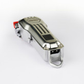 ماشینهای اصلاحی که مخصوص اصلاح موی سر ساخته میشوند، باید موتور قدرتمندی داشته باشند؛ زیرا موهای سر ضخیم بوده و نسبت به صورت و بدن تراکم بیشتری دارند. ماشین اصلاح 90394A ساخت شرکت «دی.اس.پی» با داشتن موتور لرزشی فوق العاده قوی مناسب استفاده برای اصلاح موهای ضخیم است. تیغهی ماشین اصلاح از جنس استیل پوشش داده شده با کروم است که در برابر زنگزدگی مقاوم است. به کمک این تیغه میتوان موهای سر را در اندازههای 1 تا 3.5 میلیمتر کوتاه کرد.جنس بدنه این ماشین اصلاح فلزی و در دو رنگ نقره ای و طلایی بوده که کار کردن با آن حس خوشایند کار با یک محصول با کیفیت را به شما می دهد. در کنار دستگاه، اهرم تنظیم چرخشی قرار دارد که اگر دستگاه را با دست راست بگیرد، با انگشت شست بهراحتی میتوان آن را در جای مناسب تنظیم کرد. به کمک این اهرم میتوان فاصلهی بین تیغههای بالا و پایین را تغییر داد و بدون استفاده از شانه، طول اصلاح دلخواه را تنظیم کرد. هنگامی که این اهرم به پایین فشار داده میشود، طول برش تیغهها افزایش مییابد و وقتی در بالاترین موقعیت قرار دارد، تیغهها در کمترین فاصله از هم قرار میگیرند.این محصول از باتری پر قدرت 2000 میلی آمپری بهره می برد که با 180دقیقه شارژ میتوان به مدت 200 دقیقه از آن استفاده نمود. همچنین یک صفحه LCD جهت اطلاع از میزان شارژ باقیمانده و زمان لزوم روغن کاری تیغه ، بر روی بدنه دستگاه تعبیه شده است. برای اصلاح مو در اندازههای مختلف 8 عدد شانهی اصلاح با طول برش 1.5 تا 19 میلیمتر ارائه شده که روی تیغه قفل میشوند. داخل جعبه علاوه بر شانه، برس تمیزکننده، روغن و سیم شارژ نیز قرار داده شده است.تیغههای ماشین اصلاح پس از هر بار استفاده باید روغنکاری شوند. برای این کار باید از روغن شرکت دی اس پی که داخل جعبه قرار دارد استفاده شود. توجه داشته باشید که برای روغنکاری تیغهها از گریس، روغن مو و هر روغنی که حاوی مواد نفتی یا حلال باشد استفاده نکنید؛ زیرا با تبخیر حلال آنها لایهی ضخیمی از روغن بین تیغهها باقی میماند که حرکت تیغهها را کند میکند. سیم شارژر این محصول به صورت USB ارائه شده که قابلت شارژ به وسیله آداپتور موبایل و پاوربانک را مهیا می سازد.